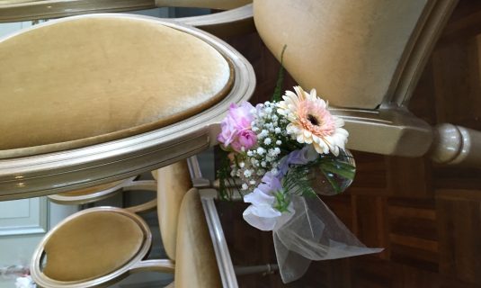 De catering speelde hierin een belangrijke rol, die de bloemstukken bij de ceremonie meenamen naar Antwerpen, waar ik ze weer mooi op hun plaats kon zetten. Aangezien ik ook een daggast was, moest ik inventief zijn. En ook daar draai ik mijn hand niet voor om.