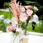 De bruid wilde heel graag een hele romantische bruiloft met veel wit en roze. Ze vond het leuk om zelf de vaasjes voor de tafels te maken, met kant en lint, om betrokken te zijn. En ook dat kan natuurlijk. De ballonnen en honeycombs leverde ze zelf, die ik in de aankleding heb verwerkt.